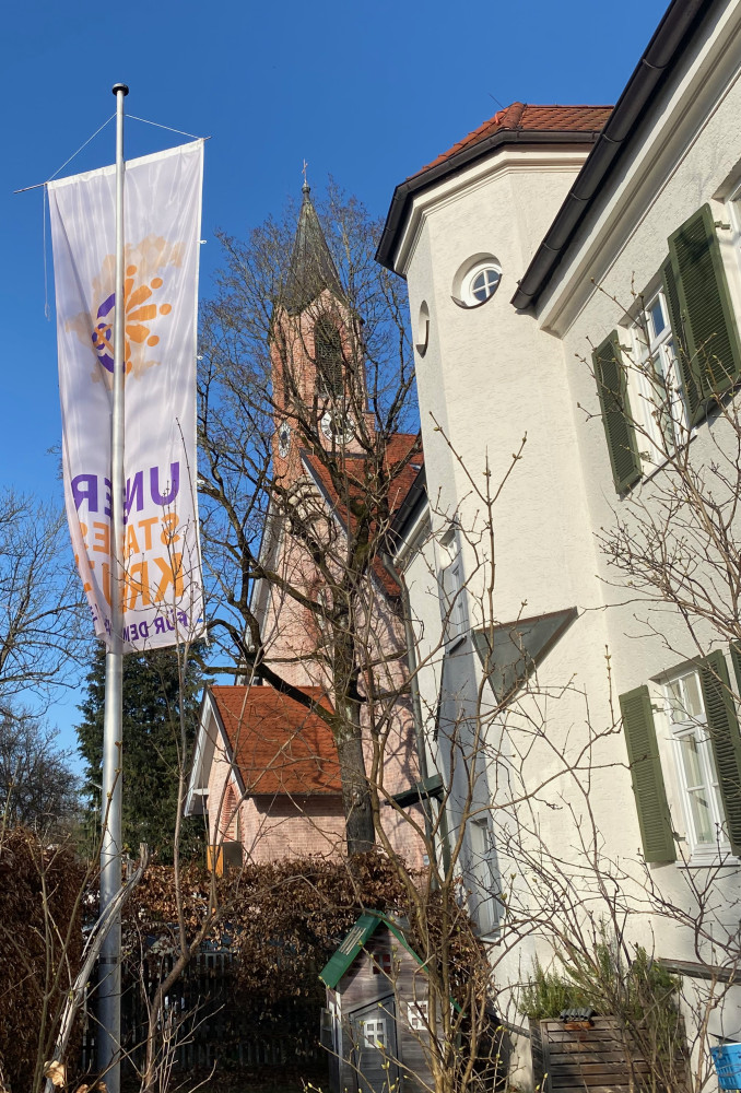 In St. Paulus, der ältesten Evangelischen Kirche Münchens, zeigt Pfarrerin Susanne Trimborn besonders gerne "Flagge für Demokratie": Seit eine Geschäftsstelle der AfD in die unmittelbare Nachbarschaft gezogen ist, finden hier regelmäßig Demonstrationen und Veranstaltungen zum Thema Demokratie statt.
